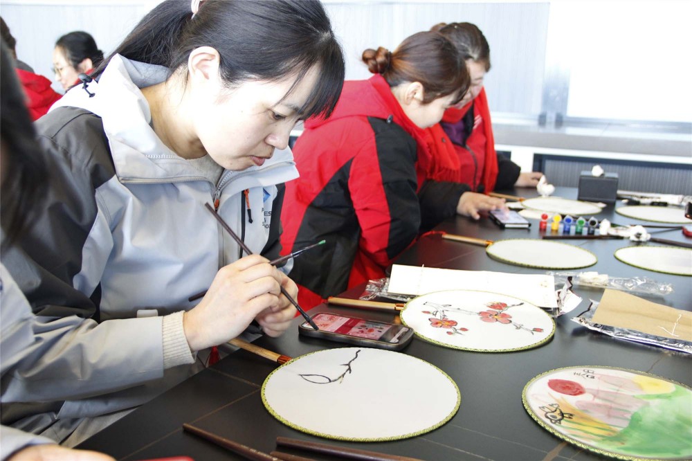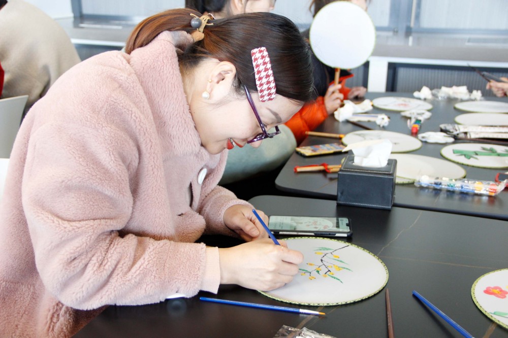 活动在一片欢声笑语中开始,在工作人员的带领下,大家兴趣盎然,纷纷拿起手中的画笔,在素净的扇面上挥毫泼墨,仔细描摹,起笔,落笔,或浓重墨彩,或轻描淡写,经过用心绘制,一幅幅生动雅致的扇面悄然诞生,让人赏心悦目。