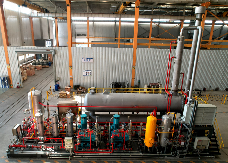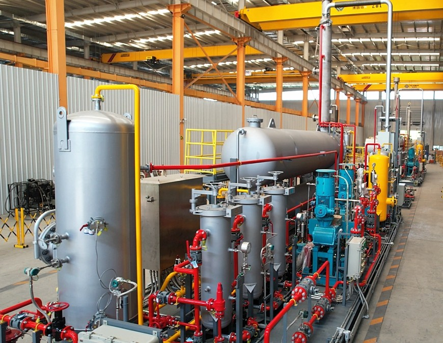 此次国家管网西气东输金坛储气库采购的三甘醇脱水装置,主要投用在该储气库的地面设施扩能项目,设计压力10兆帕,单套每天可处理600万方。值得一提的是,该设备集成度高、占地面积小,自动化程度高、自动变频调节,可实现无人值守,设备投用后,金坛储气库西注采气站注采能力也将由原600万方/天增至1800万方/天。