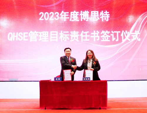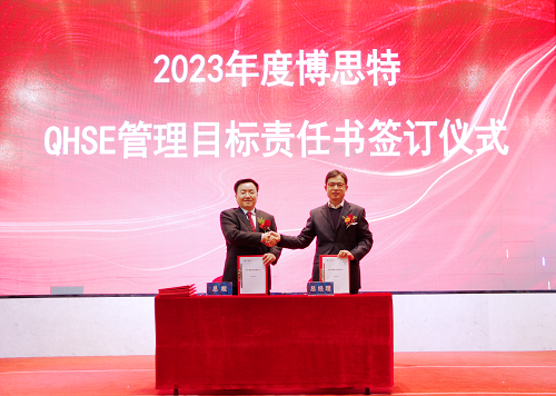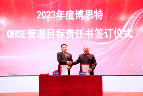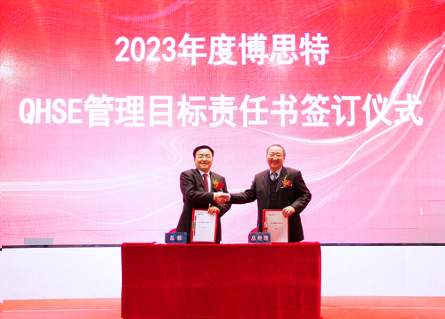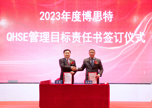 会上,董事长兼总裁黄健民与各中心、事业部总经理签订了《QHSE管理目标责任书》,明确管理目标,全方位管控安全、质量、环保、职业健康。
