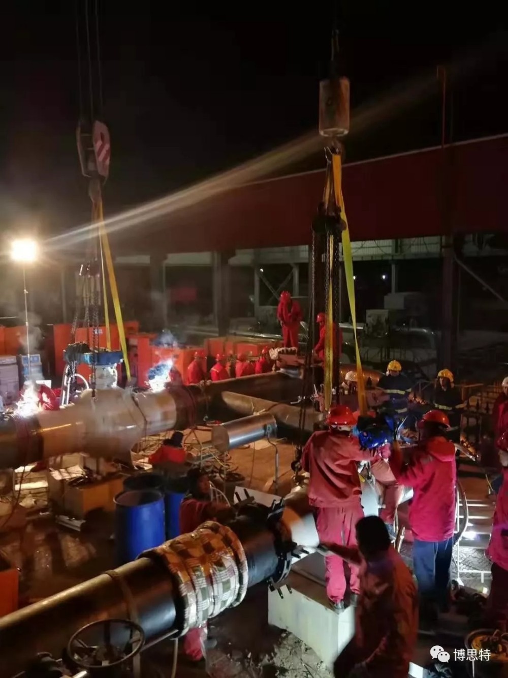 图为抚顺输油站工程施工现场-动火焊接作业